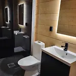 חדר האמבטיה עם מקלחון, שירותים נפרדים וכיור גם מסופק.